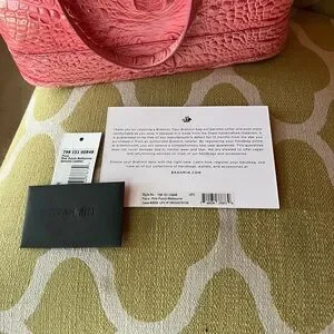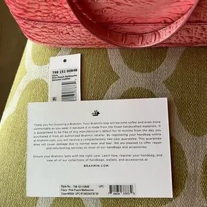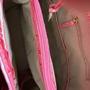 The Brahmin Pink Shoulder Bag is a beautiful bag in punch pink in EUC and from a smoke-free environment. Its structured design and glossy finish make it a standout piece, perfect for adding a bold touch to any ensemble. With double top handles and metal hardware accents, this bag is a great size.