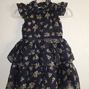 Janie and Jack Girl Dark Marine Glitter Floral Chiffon Dress