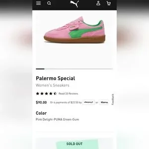 Step out in style with these vibrant pink and green sneakers. SOLD OUT at Puma site. Perfect for adding a pop of color to any outfit.