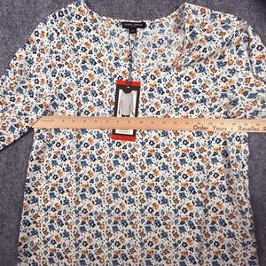 Mario Serrani Blouse Womens Medium Floral V Neck 3/4 Sleeve Lightweight Top