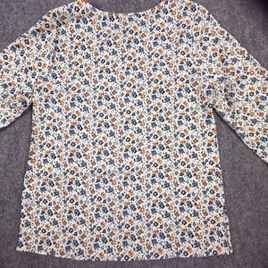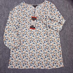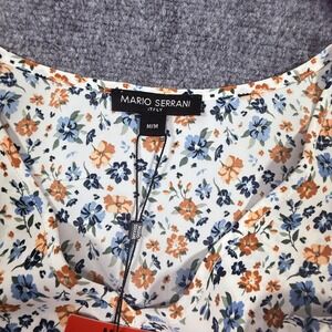 Mario Serrani Blouse Womens Medium White Floral V Neck Top 3/4 Sleeve Lightweight