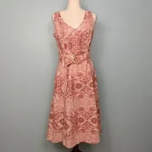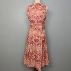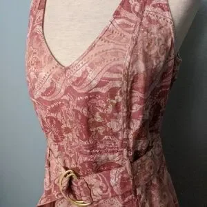 "Tape measure sleeveless tank midi dress. V-neck. Belt loops with belt. Belt has gold D rings. Invisible side zipper.