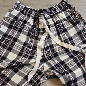 Stylish plaid pants with a drawstring waist. Perfect for lounging. side pockets elastic waistband genlty used