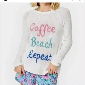 NWT Lilly Pulitzer White Coffee Beach Repeat Danette Sweater