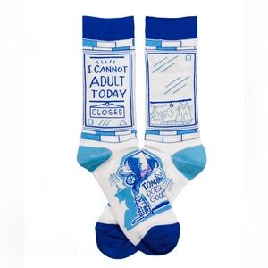 brand new with tag Primitives by Kathy ‘I Cannot Adult Today’ Socks (Unisex/Gender neutral). These colorful cotton blend crew-length socks feature a whimsically funny design/statement. Blue and white combo colors crafted with quality materials, they ensure a soft comfy fit all day long! 💙 🐱 🩵 OSFM