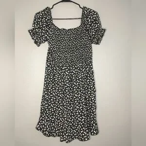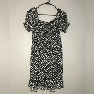 floral dress black and white size medium Brand hesperus puff sleeve