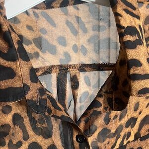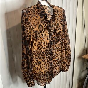 Semi-sheer black and brown leopard print button down top. Two front chest pockets. NWOT.