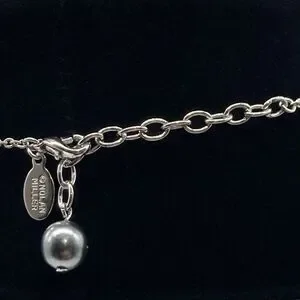 NOLAN MILLER Adjustable 16" to 18" Length Necklace Silver Tone Gray Faux Round Pearls And Rhinestones that Sparkle! Oval Link Chain. Preowned but Rarely Worn. Excellent Condition!