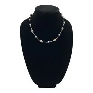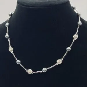 NOLAN MILLER 18” Necklace Silver Tone Gray Faux Round Pearls And Rhinestones