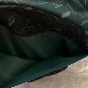 Stylish MEC belt bag with a dark green pattern. Perfect for essentials.