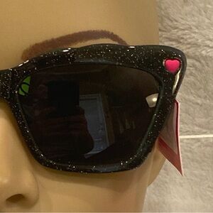 Betsey Johnson Square Butterfly Shape Sparkly Black Sunnies Sunglasses NWT