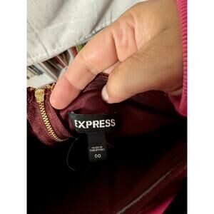 Make a statement in this stunning red Express strapless velvet pant suit. Perfect for a night out or a special event, this suit is sure to turn heads. The luxurious velvet material feels amazing against the skin, and the strapless design shows off your shoulders. The pants are tailored for a flattering fit, making you look and feel your best. This suit is in excellent condition and ready to wear. Don't miss out on this must-have addition to your wardrobe! This is a size 00.