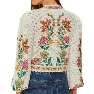 Farm Rio Off-White Garden Delight Knit Cardigan NWT