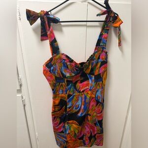 Farm Rio Rainbow Bananas Shoulder-Tie Mini Dress.