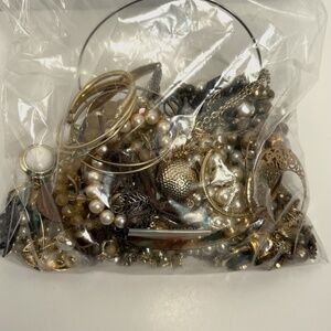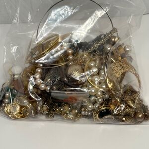 Weighs just over 3 pounds. Jewelry in lot shows wear and/or may be broken, tangled, or missing something. Sold for repair/parts/crafts/art & upcycling. Includes some smalls and findings. Pictures are of what you will receive. Likely to include bracelet, necklaces, chains and more. Most are gold, rose gold or brass color/tone.