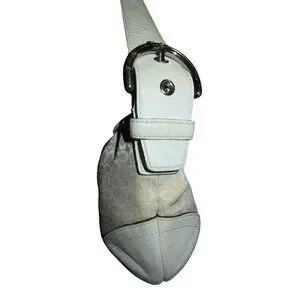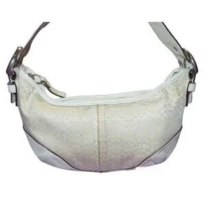 Coach 2003 Cream & White Canvas and Leather Signature Demi Baguette Shoulder Bag