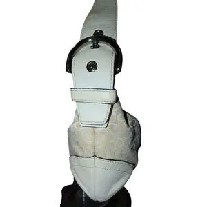 The Coach 2003 Cream & White Canvas and Leather Signature Demi Baguette Shoulder Bag is a stylish accessory, perfect for any occasion. Its compact design offers elegance and functionality for everyday use.