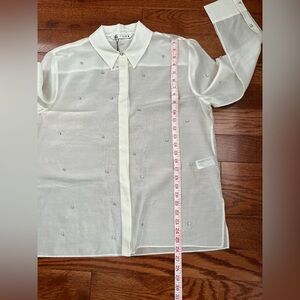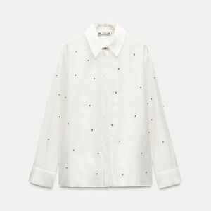 NWT!! Zara Oyster White Ecru Semi Sheer Shirt Blouse With Jewels Size L