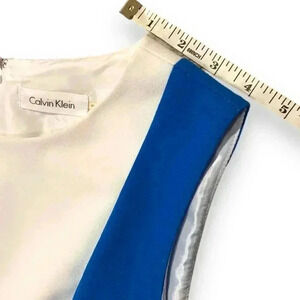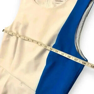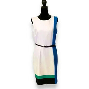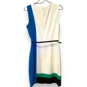 Calvin Klein Colorblock Size 8 Knee Length Black Leather Belted Casual Dress