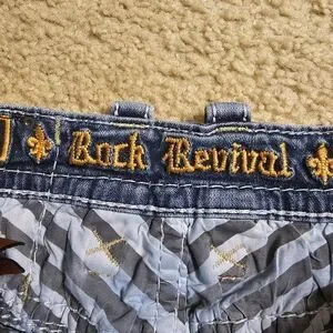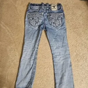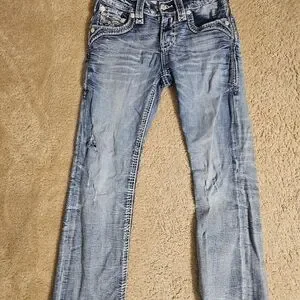 Rock Revival Blue Distressed Embroidered Jeans . Inseam Is 30