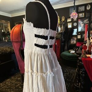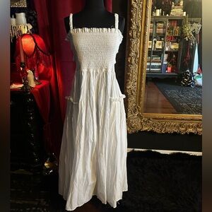 ASOS textured midi dress. Worn once, perfect condition. Size 10 (can fit up to a size 12) picture was taken in warm lighting, dress is white.