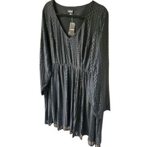 Torrid Black At The Knee Geo Lace V-Neck Skater Dress NWT