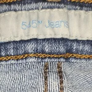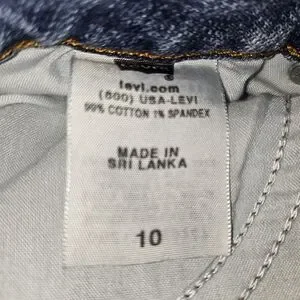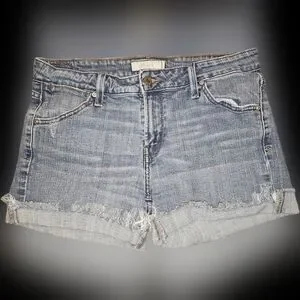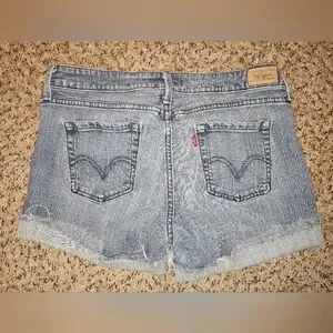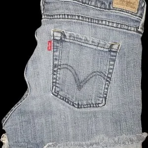 Stylish Levi's jean shorts. Classic blue denim. Frayed hem for a casual look. Perfect for everyday wear.