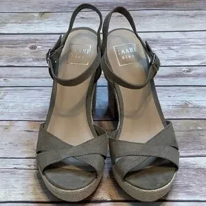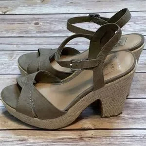 Kaari Blue Vera Size 8.5 Olive Green Suede Platform Espadrille Jute Heel