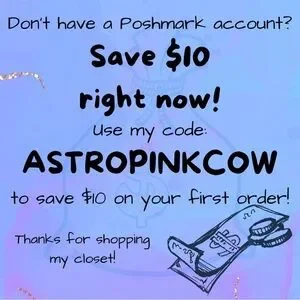 Don’t have a Poshmark account but you’re thinking about ordering? SAVE $10 RIGHT NOW!! Use my code ASTROPINKCOW when you sign up to save $10 on your first order!