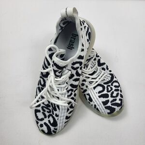 Brash Leopard Print Lace up Tennis Shoe Women's Size 8 Sneakers White Black