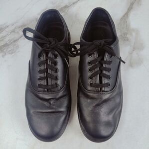 Tredsafe Wmn's Kensley Slip Resistant Black Faux Leather Oxford Work Sneakers, 7