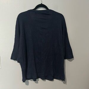 Boden Notch-collar Linen Henley Navy V-Neck Short Sleeve Top