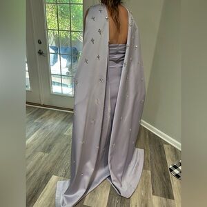 Step into elegance with this stunning lavender gown, adorned with intricate embellishments. Perfect for special occasions, this dress offers a sophisticated and timeless look. ALREADY DRY CLEANED READY TK BE YOURS