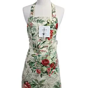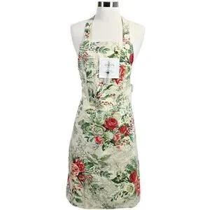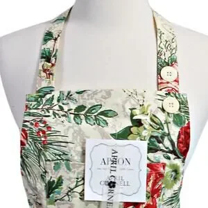 April Cornell Holiday Christmas Floral Apron 100% Cotton One Size
