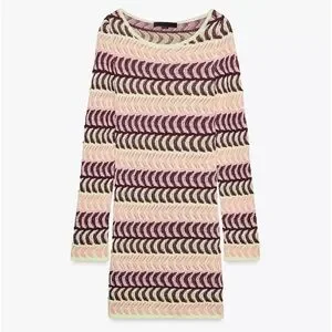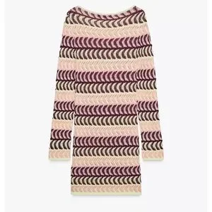 Stylish knit dress with a vibrant pattern. Features purple, yellow, and cream colors. NEVER WORN
