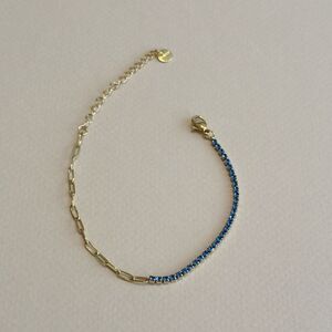 This stunning bracelet features a luxurious gold chain paired with vibrant blue accents. Perfect for adding a touch of elegance to any outfit.