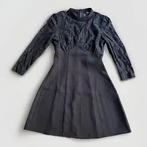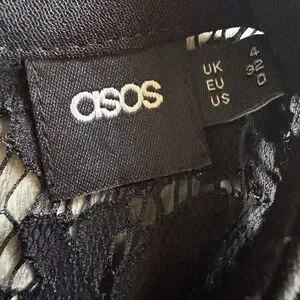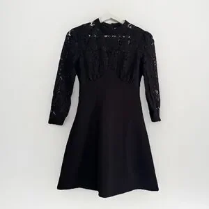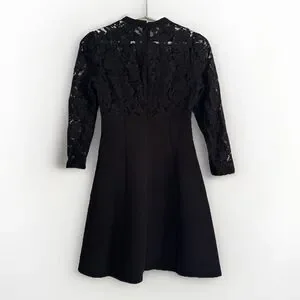 ASOS Mini Dress Black Sz 0 High Neck Skate Lace Insert & Lace Sleeves Stretch