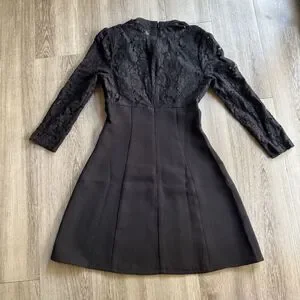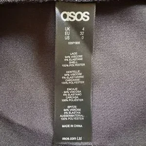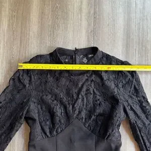 The ASOS Mini Dress in black size 0 features a high neckline with lace insert and lace sleeves, making it a stylish and versatile addition to any wardrobe. The dress has a zipper closure and is designed with a flattering A-Line silhouette. With its stretch fabric and short length, it is perfect for all seasons and can be dressed up or down for various occasions. Made by the brand Asos, this dress is sure to become a staple piece for any fashion-forward woman.