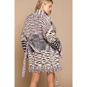 POL Confetti Tie Waist Cardigan Tassel Fringe Relaxed Fit: