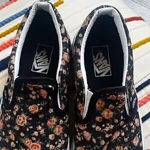 Vans Black Floral Slip-On Shoes