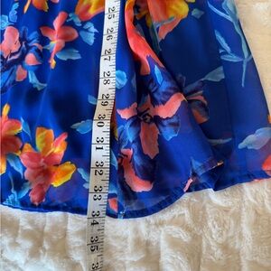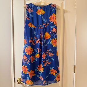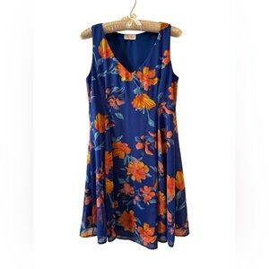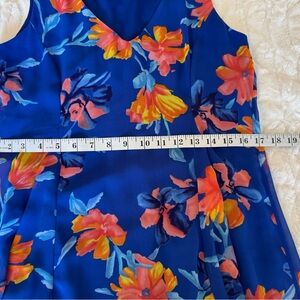NWOT Vibrant floral sleeveless lined wrinkle free dress with a V-neckline. Royal blue and orange size small Perfect for a summer outing.