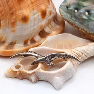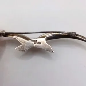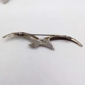 Elegant Mexico Silver flying bird brooch with intricate details. Perfect for adding a touch of gliding freedom to any outfit. It measures 2.75 inches across and .5 inch tall..Bch11