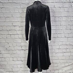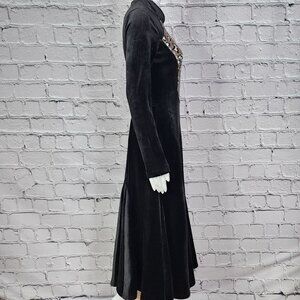 Sophie Marand Black Maxi Dress features a full length design adorned with leopard sequins. Sized 34, the dress has a pleated bottom and made from comfortable velour material, perfect for women's sophisticated style.