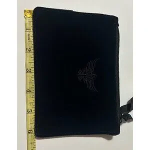 Apatchy London Small Black Velvet Coin Purse With Embroidered Logo & Zipper Clos