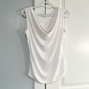 Designed to gracefully drape around the neckline to create an elegant allure and flattering silhouette.This stylish sleeveless top features additional side-ruching detail that contours natural curves and enhances shape and structure.