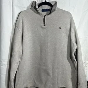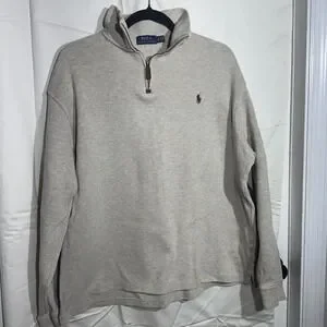 Polo Ralph Lauren Sweater Beige Pullover Quarter Zip Sweatshirt Pony Mens XL