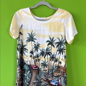 This vibrant midi dress combines a sheath style with playful puff sleeves and a classic crew neck, perfect for casual or resort wear. The yellow and green hues add a fresh, lively touch, making it an ideal choice for warm weather outings. Its comfortable fit ensures you stay stylish and relaxed all day long.