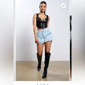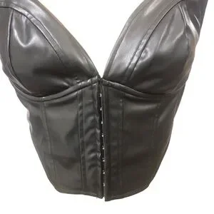 AKIRA Black AYLA Faux Leather Corset Crop Top size Medium moto biker-core