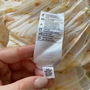 Vince Pressed Petal Long Sleeve Off White Floral Print Crinkle Blouse EUC Size L