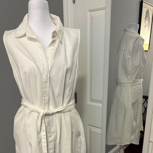 Who What Wear White Sleeveless Button Down Midi Sundress with Pockets